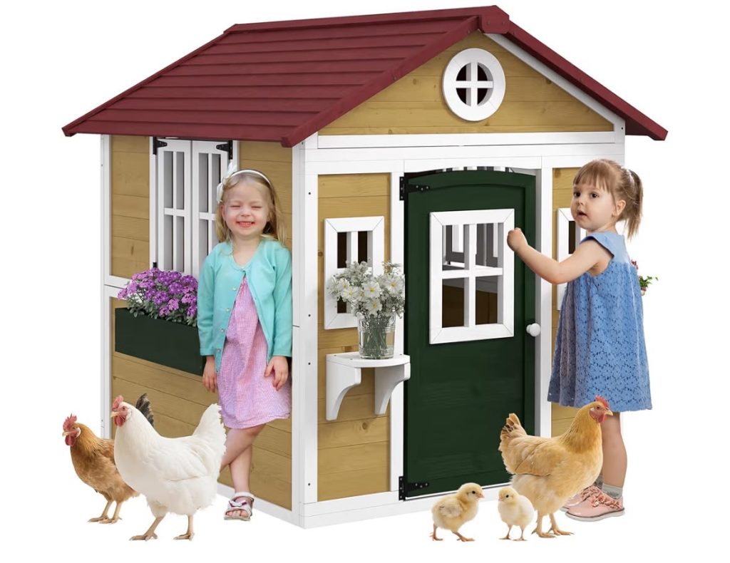 8. Wooden Cottage Playhouse with Planters
