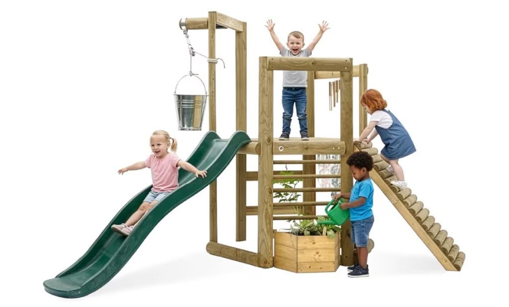4. Wooden Nature Playset with Slide + Planter