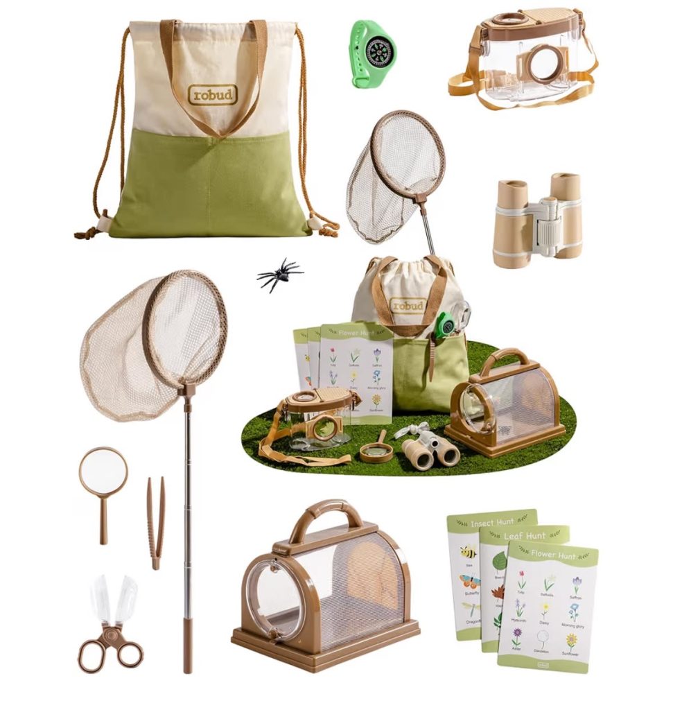 With binoculars, magnifier, bug catcher, and activity cards, it turns simple backyard time into meaningful discovery.