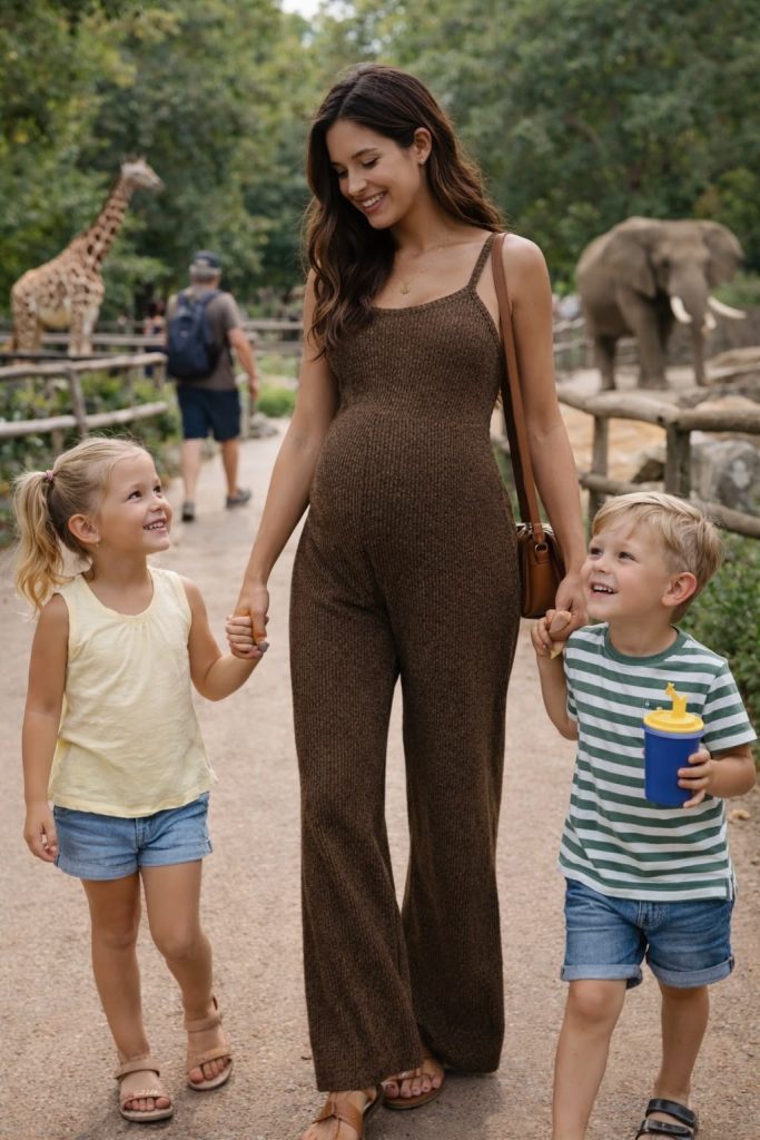 And somehow, rompers always look styled. Even when you didn’t try. They’re comfortable. They’re flattering. And they make pregnancy feel a little more fun.