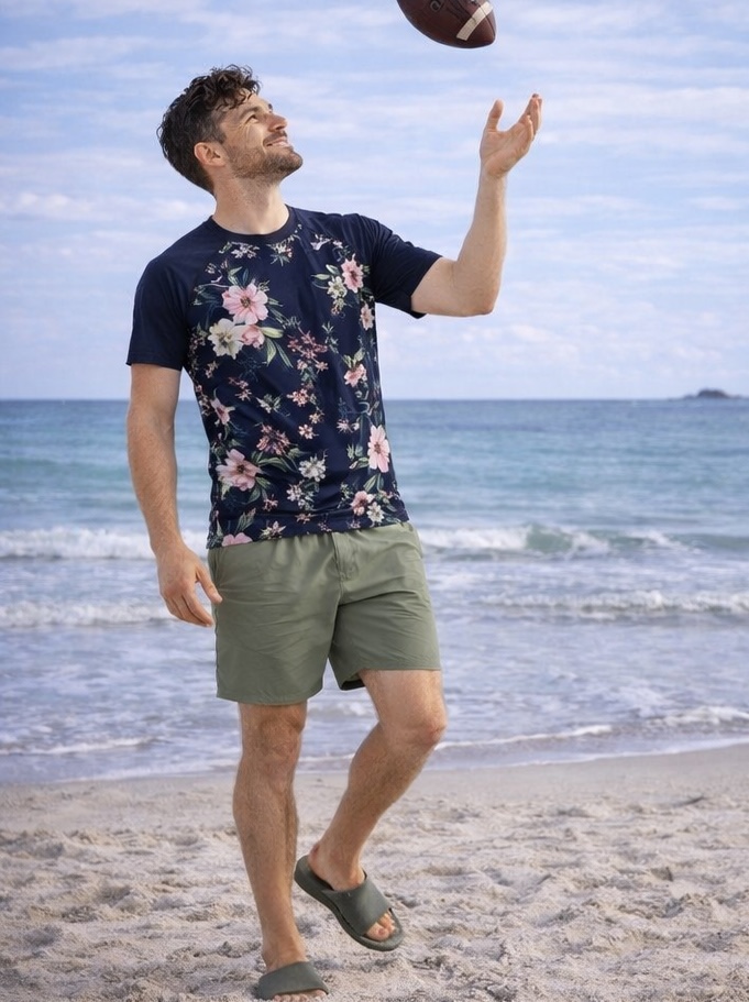 Comfortable swim trunks in a rich Evergreen Coast green, designed for beach days, swimming, and relaxed seaside style. The earthy tone pairs perfectly with the Midnight Garden Seaside Collection for an effortlessly coordinated family look.
