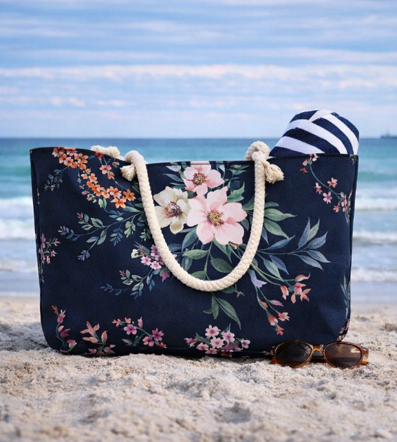 A luxurious oversized weekender bag featuring the elegant Midnight Garden floral print. Spacious, stylish, and perfect for beach trips or weekend getaways, it pairs beautifully with the Midnight Garden Seaside Collection for a coordinated travel look.