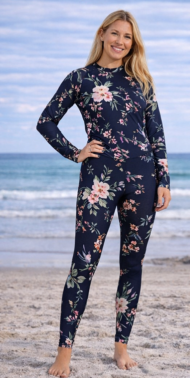 Designed for comfort, coverage, and effortless beach style, the Midnight Garden Swim Leggings are perfect for swimming, paddleboarding, or long days by the water. The soft, stretch fabric moves with you while the elegant Midnight Garden floral print adds a timeless, coastal feel. Pair them with matching pieces from the Midnight Garden Seaside Collection for a beautifully coordinated beach look.