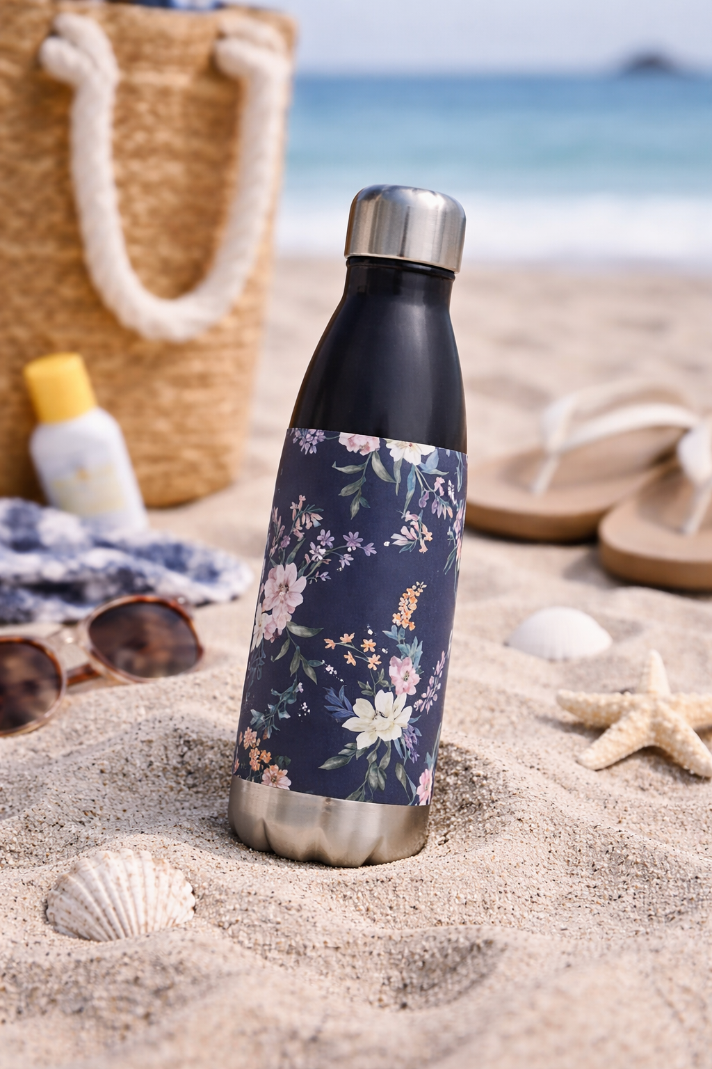 The Midnight Garden Stainless Steel Water Bottle features a soft floral design inspired by slow beach mornings, lake days, and sun-soaked family vacations. Lightweight yet durable, it keeps your drinks at the perfect temperature while adding a subtle, elevated touch to your everyday essentials.