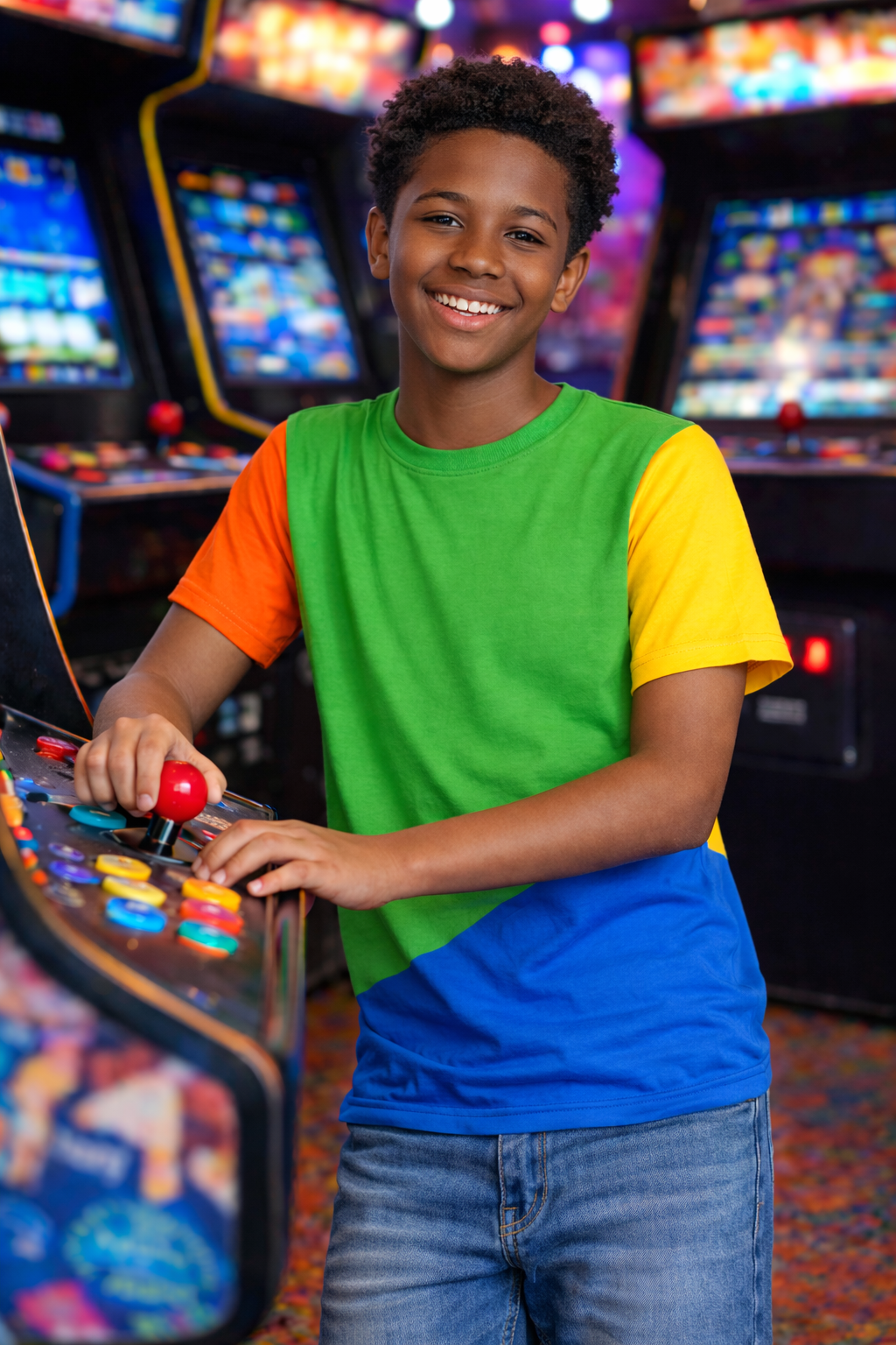 Step into a blast from the past with the Time Warp Arcade Tee, a bold color block design inspired by the golden age of arcade games. With its bright primary palette and retro layout, this tee brings high-energy nostalgia to everyday adventures—perfect for kids who move fast, play hard, and live in full color. Soft, comfortable, and made for all-day wear, it’s the kind of shirt that feels just as at home at the playground as it would under the glow of vintage arcade lights.