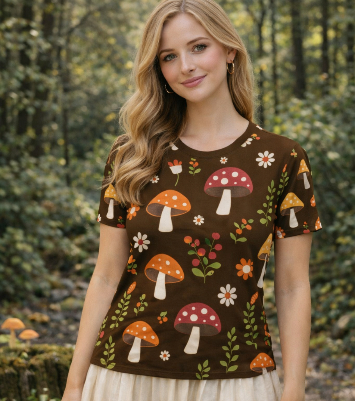 Step into a little forest magic with the Woodland Mushroom Tee. Featuring a whimsical all-over print of mushrooms, wildflowers, and woodland greenery on a warm earthy background, this tee feels like wandering through a fairy garden after the rain. Playful, cozy, and a little bit enchanted, it’s perfect for nature lovers, cottagecore fans, and anyone who likes their style with a touch of woodland whimsy. 🍄🌿✨